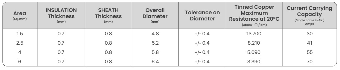 ✴Conductor : Electrolytic Multi Stranded tinned copper conductor flexible